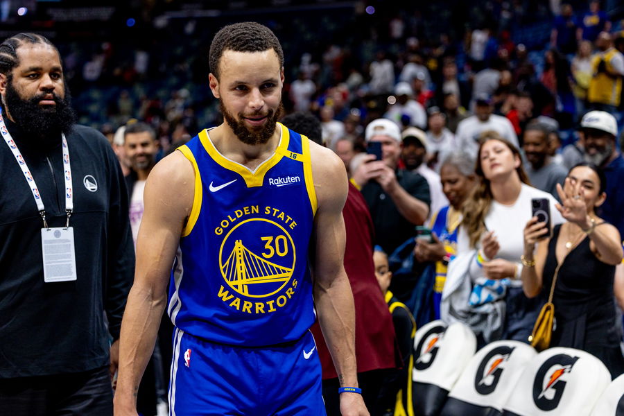 Mar 28, 2025; New Orleans, Louisiana, USA; Golden State Warriors guard Stephen Curry (30) after the game against the New Orleans Pelicans at Smoothie King Center. Mandatory Credit: Stephen Lew-Imagn Images