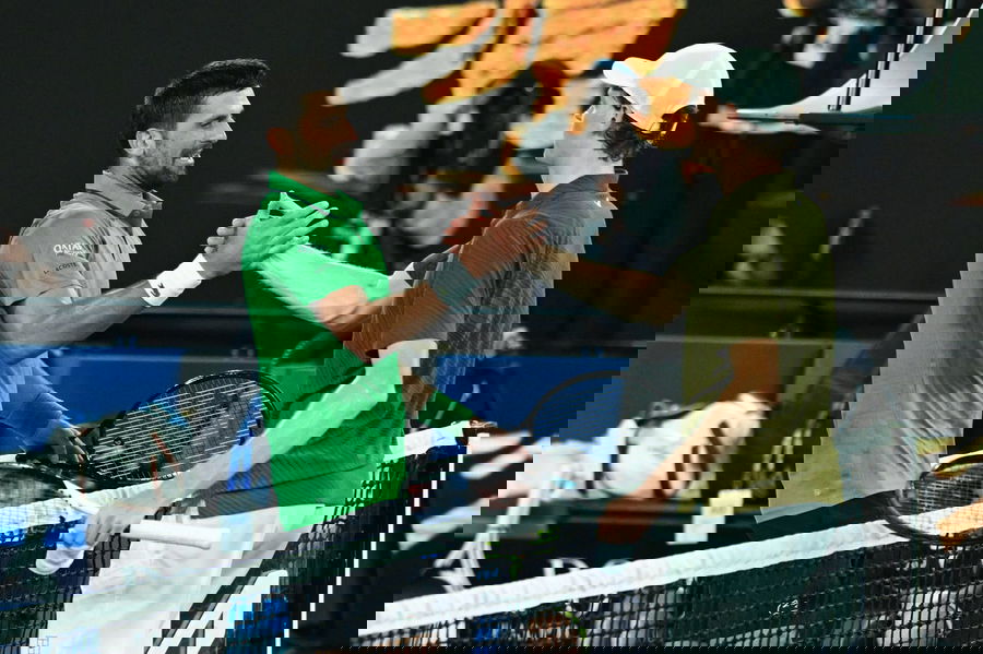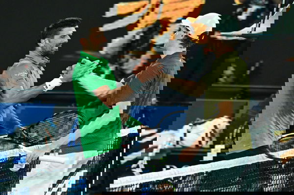 TENNIS AUSTRALIAN OPEN, Jannik Sinner of Italy congratulates Novak Djokovic of Serbia on his win in the mens semifinal on day 13 of the 2026 Australian Open tennis tournament at Melbourne Park in Melbourne, Saturday, January 31, 2026. NO ARCHIVING MELBOURNE VICTORIA AUSTRALIA PUBLICATIONxNOTxINxAUSxNZLxPNGxFIJxVANxSOLxTGA Copyright: xJAMESxROSSx 20260131110983465720