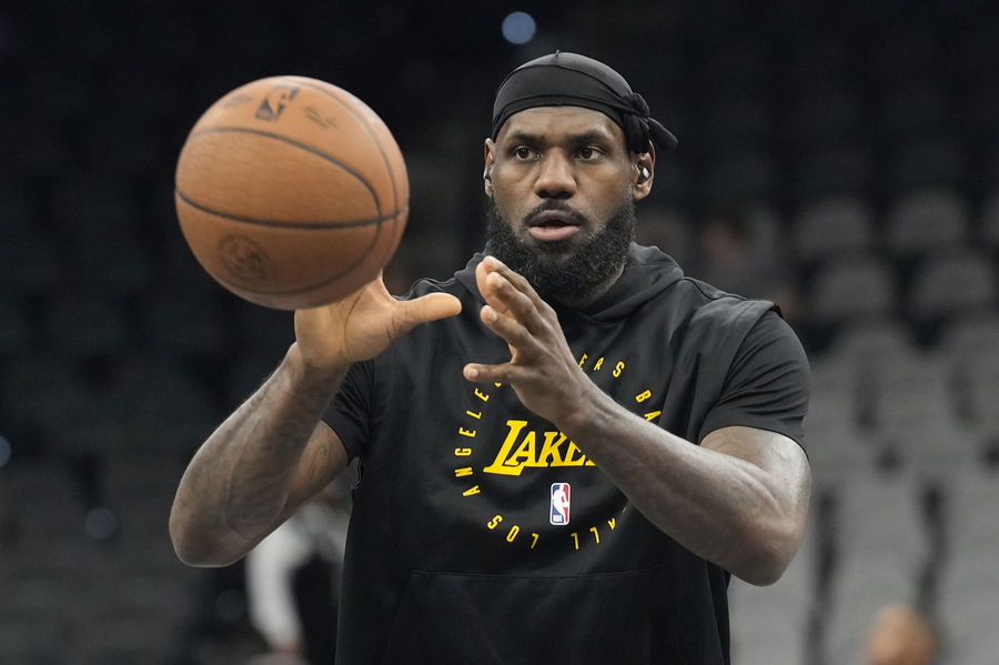 Nov 15, 2024; San Antonio, Texas, USA; Los Angeles Lakers forward LeBron James (23) warms up before a game against the San Antonio Spurs at Frost Bank Center. Mandatory Credit: Scott Wachter-Imagn Images