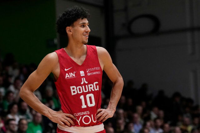 NANTERRE, FRANCE – MARCH 23: Zaccharie Risacher (10) (Bourg en Bresse) looks on during the French National Basketball League (LNB) game between Nanterre 92 and Bourg en Bresse at Palais des sports Maurice Thorez on March 23, 2024 in Nanterre, France. (Photo by Glenn Gervot/Icon Sportswire via Getty Images)