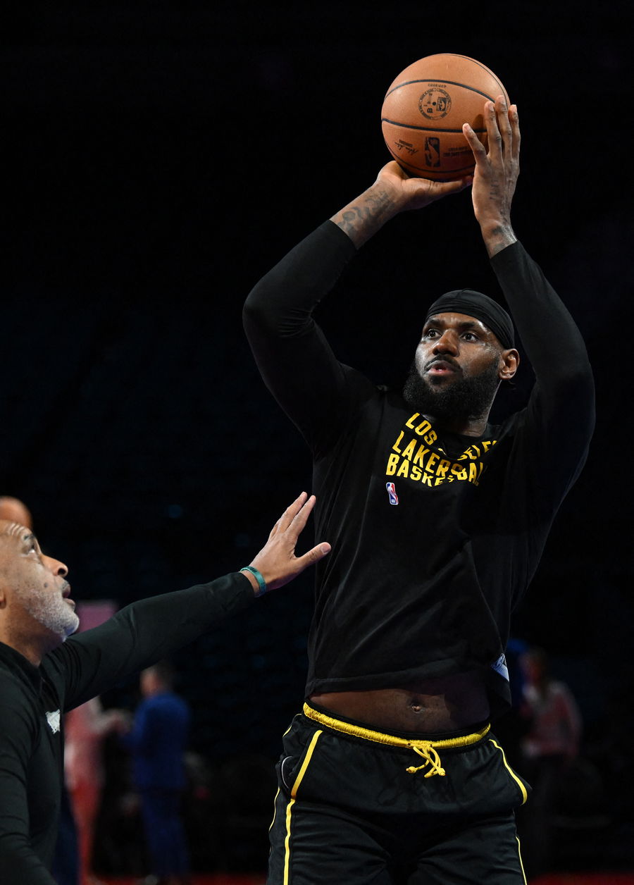Dec 9, 2023; Las Vegas, Nevada, USA; Los Angeles Lakers forward LeBron James (23) warms up before the NBA In-Season Tournament Championship game against the Indiana Pacers at T-Mobile Arena. Mandatory Credit: Candice Ward-USA TODAY Sports