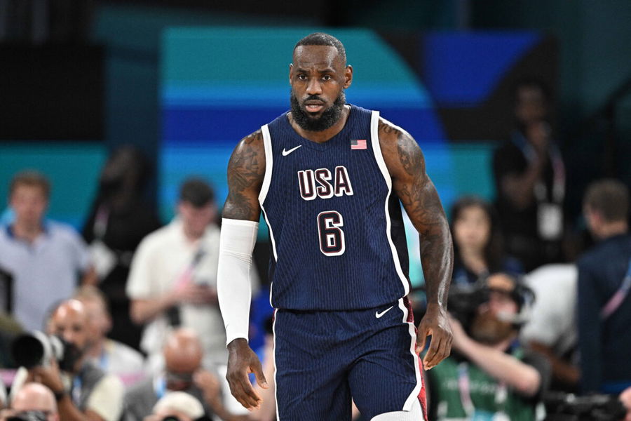 Paris 2024 – Basketball – Lebron James at USA v Brazil Lebron James during the basketball match between Team USA and Team Brazil on day eleven of the Paris 2024 Summer Olympic Games in Paris, France on August 6, 2024. Photo by David Niviere/ABACAPRESS.COM Paris France PUBLICATIONxNOTxINxFRAxUK Copyright: xNivierexDavid/ABACAPRESS.COMx