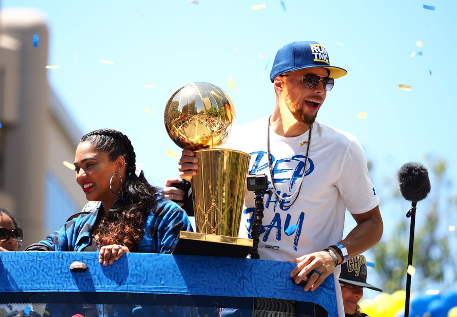 Jun 12, 2018; Oakland, CA, USA; Golden State Warriors guard Stephen Curry (30) and Ayesha Curry during the championship parade in downtown Oakland. Mandatory Credit: Kelley L Cox-USA TODAY Sports