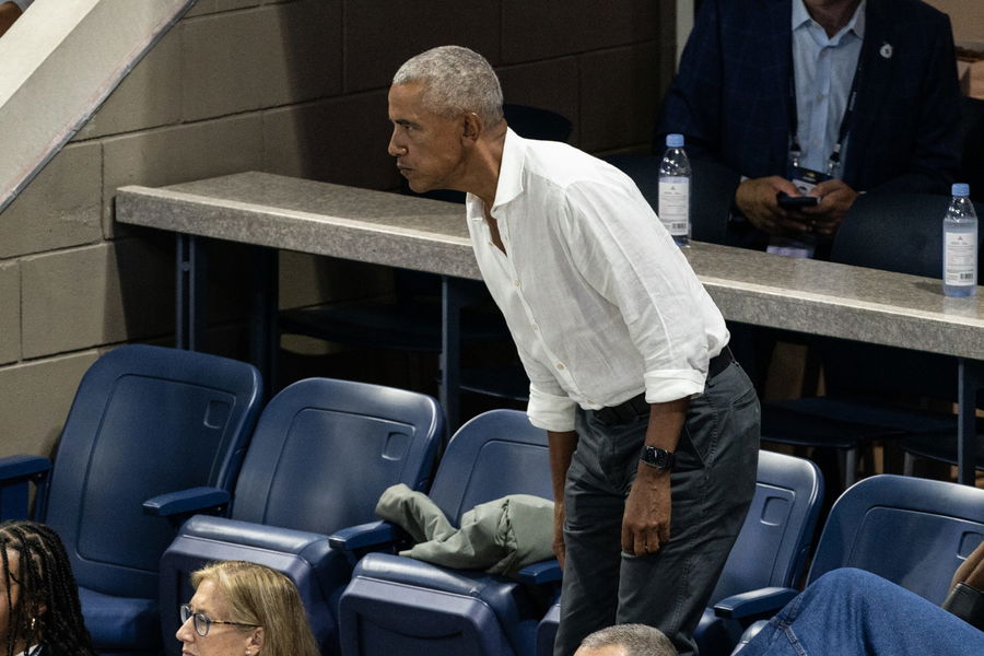 NEW YORK, UNITED STATES – AUGUST 28: Barack Obama, Former President of the USA attends match between Coco Gauff of USA and Laura Siegemund of Germany at US Open Championships at Billie Jean King Tennis Center in New York on August 28, 2023. (Photo by Lev Radin/Anadolu Agency via Getty Images)