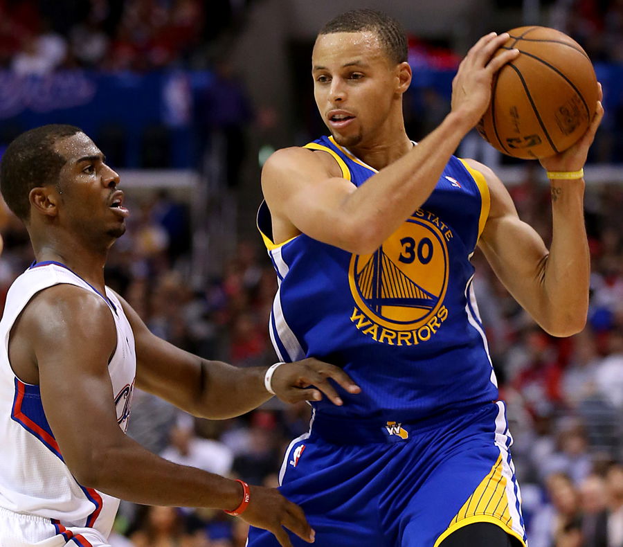 Clippers guard Chris Paul in action against Warriors guard Stephen Curry on Thursday, Oct. 31, 2013, at Staples Center in Los Angeles. The Clippers won, 126-115. (Photo by Luis Sinco/Los Angeles Times via Getty Images)
