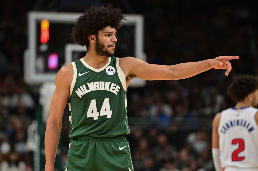 Sep 30, 2024; Milwaukee, WI, USA; Milwaukee Bucks center Andre Jackson Jr. (44) during Media Day at Fiserv Forum. Mandatory Credit: Benny Sieu-Imagn Images