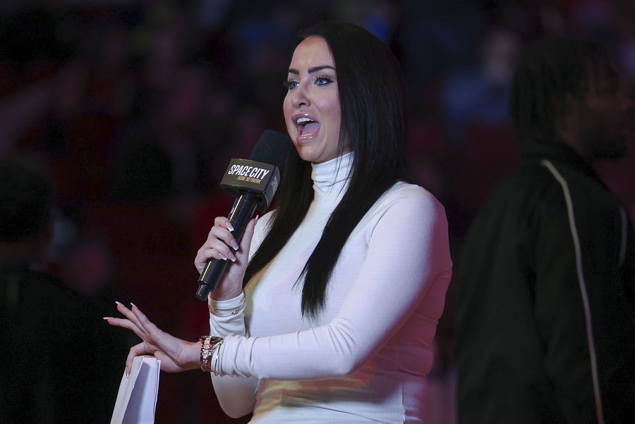 Jan 20, 2024; Houston, Texas, USA; Sideline reporter Vanessa Richardson during the game between the Houston Rockets and the Utah Jazz at Toyota Center. Mandatory Credit: Troy Taormina-USA TODAY Sports