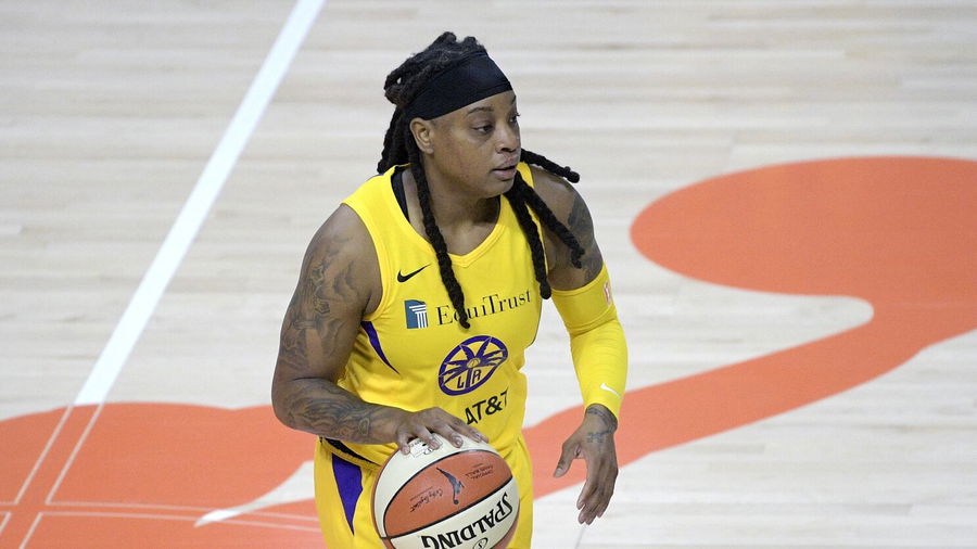 Los Angeles Sparks guard Riquna Williams (2) sets up a play during the first half of a WNBA basketball game against the Phoenix Mercury, Saturday, July 25, 2020, in Bradenton, Fla. (AP Photo/Phelan M. Ebenhack)