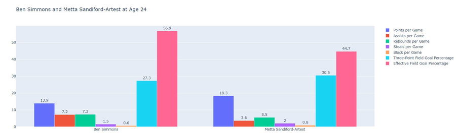 Ben Simmons and Metta Sandiford-Artest at Age 24 (Stats valid as of 13th March 2022)