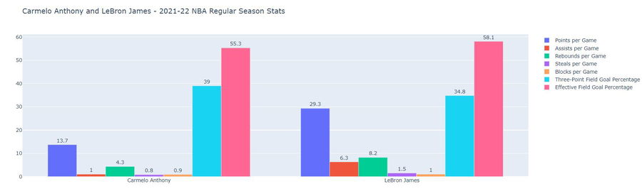 Carmelo Anthony and LeBron James – 2021-22 NBA Regular Season Stats (Stats valid as of 10th March 2022)