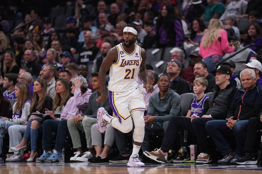 NBA, Basketball Herren, USA Los Angeles Lakers at Sacramento Kings Jan 7, 2023 Sacramento, California, USA Los Angeles Lakers guard Patrick Beverley 21 reacts after making a three point basket against the Sacramento Kings in the first quarter at the Golden 1 Center. Sacramento Golden 1 Center California USA, EDITORIAL USE ONLY PUBLICATIONxINxGERxSUIxAUTxONLY Copyright: xCaryxEdmondsonx 20230107_anw_se9_288