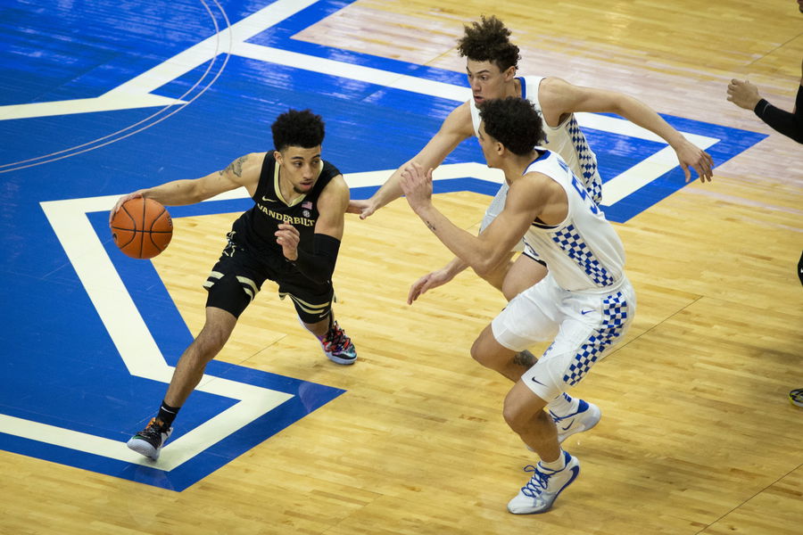 Jan 5, 2021; Lexington, Kentucky, USA; Vanderbilt Commodores guard Scotty Pippen Jr. (2) moves towards the basket against the Kentucky Wildcats during the first half at Rupp Arena at Central Bank Center. Mandatory Credit: Arden Barnes-USA TODAY Sports