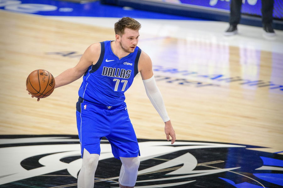 Feb 4, 2021; Dallas, Texas, USA; Dallas Mavericks guard Luka Doncic (77) in action during the game between the Dallas Mavericks and the Golden State Warriors at the American Airlines Center. Mandatory Credit: Jerome Miron-USA TODAY Sports
