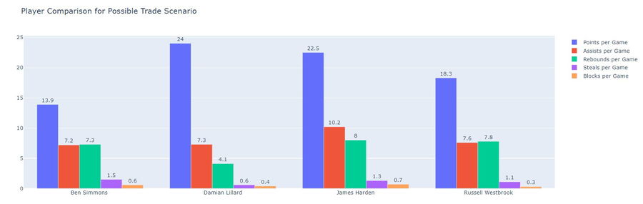 Player Comparison for Possible Trade Scenario (Ben Simmons Stats are from 2020-21 NBA Season)