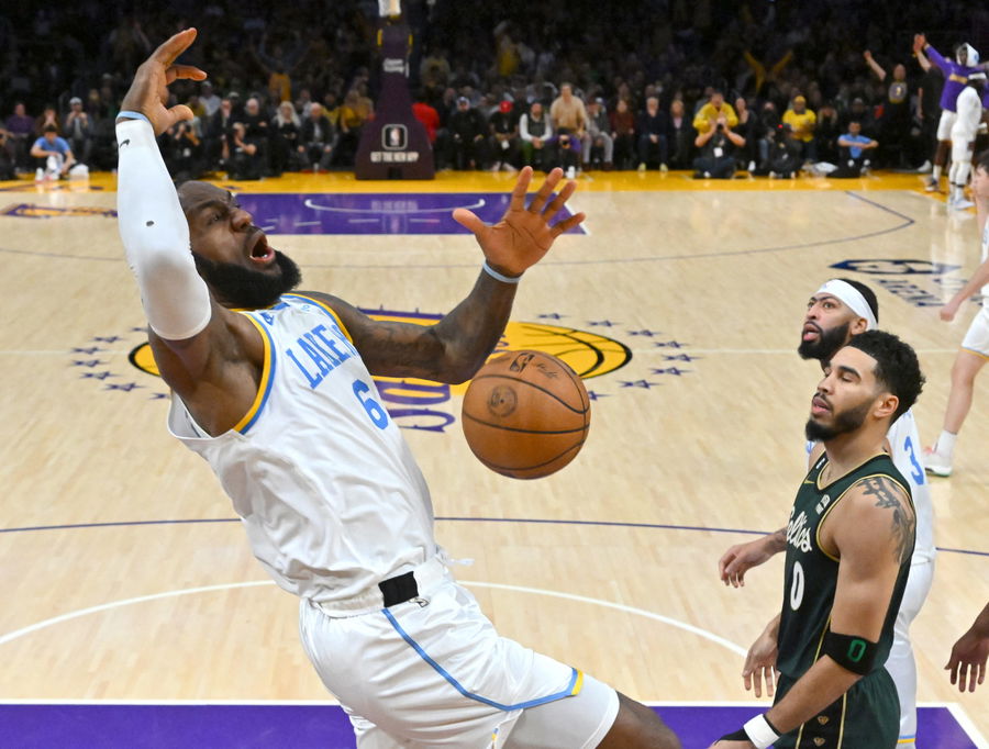 Dec 13, 2022; Los Angeles, California, USA; Los Angeles Lakers forward LeBron James (6) dunks the ball in the second half against the Boston Celtics at Crypto.com Arena. Mandatory Credit: Jayne Kamin-Oncea-USA TODAY Sports TPX IMAGES OF THE DAY