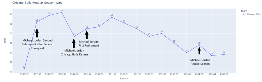 Chicago Bulls Regular Season Wins Before, With, and After Michael Jordan