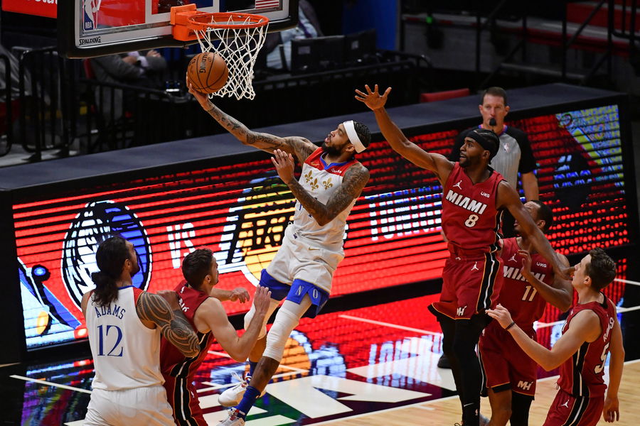 Dec 25, 2020; Miami, Florida, USA; New Orleans Pelicans forward Brandon Ingram (14) shoots the ball against the Miami Heat during the second half at American Airlines Arena. Mandatory Credit: Jasen Vinlove-USA TODAY Sports