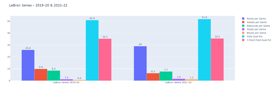 LeBron James Stats in 2019-20 vs 2021-22 (2021-22 Stats valid as of 24th Jan 2022)