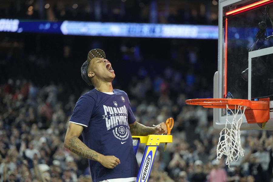 Basketball, NCAA Final Four, Connecticut Huskies – San Diego State Aztecs NCAA, College League, USA Basketball: Final Four National Championship-San Diego State vs UCONN Apr 3, 2023 Houston, TX, USA Connecticut Huskies guard Jordan Hawkins 24 celebrates with cutting the net after defeating the San Diego State Aztecs in the national championship game of the 2023 NCAA Tournament at NRG Stadium. Houston NRG Stadium TX USA, EDITORIAL USE ONLY PUBLICATIONxINxGERxSUIxAUTxONLY Copyright: xBobxDonnanx 20230403_ads_sd2_174