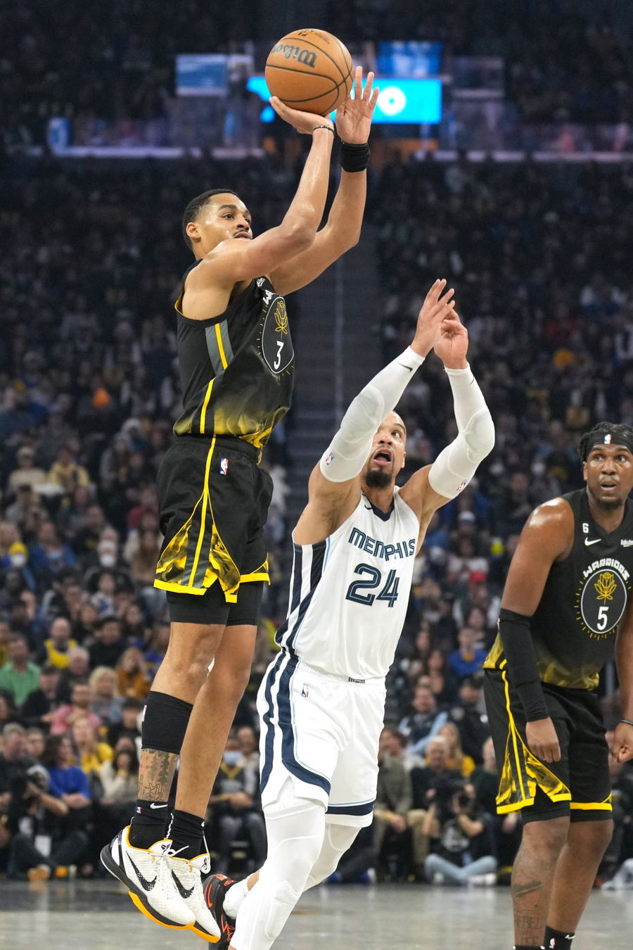 Despite a forced exit, Jordan Poole scored 32 points with 3 rebounds in the 29 minutes he played, the highest for his team tonight. The Warriors eventually won 123-109 over the high-flying Grizzlies.