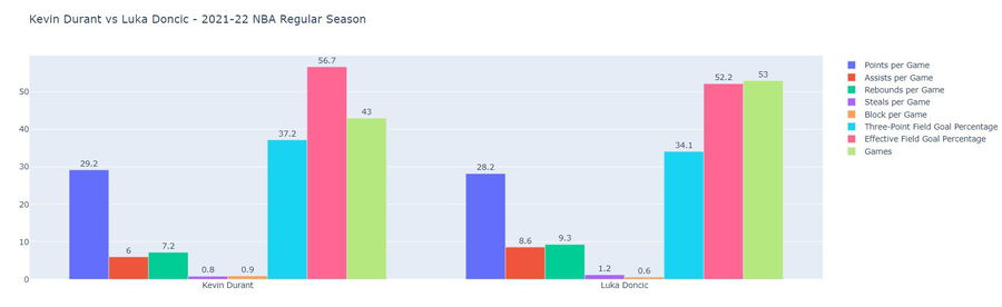 Kevin Durant vs Luka Doncic – 2021-22 NBA Regular Season (Stats Valid as of 17th March 2022)