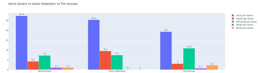 Kevin Durant vs Oscar Robertson vs Tim Duncan (Kevin Durant Stats valid as 24th Feb 2022) (Stats are inclusive of Regular Season and Playoffs)