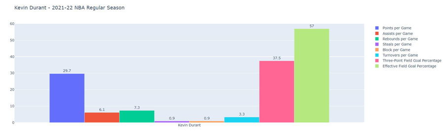 Kevin Durant – 2021-22 NBA Regular Season (Stats Valid as of 31st March 2022)