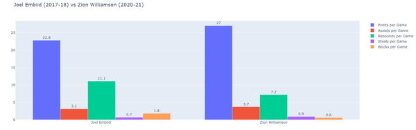Season Averages of Joel Embiid (2017-18) and Zion Williamson (2020-21)