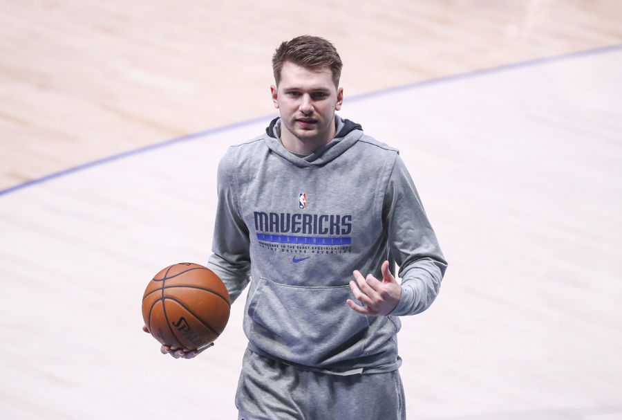 Jan 25, 2021; Dallas, Texas, USA; Dallas Mavericks guard Luka Doncic (77) warms up before the game against the Denver Nuggets at American Airlines Center. Mandatory Credit: Kevin Jairaj-USA TODAY Sports