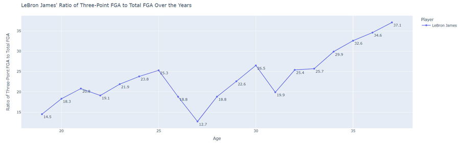 LeBron James’ Ratio of Three-Point FGA to Total FGA Over the Years (Stats Valid as of 8th March 2022)