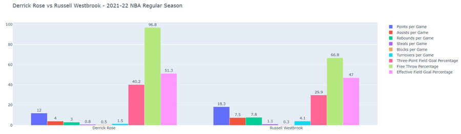 Derrick Rose vs Russell Westbrook – 2021-22 NBA Regular Season (Stats valid as of 22nd Feb 2022)