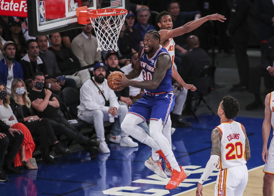 Jun 2, 2021; New York, New York, USA; New York Knicks forward Julius Randle (30) drives to the basket in the third quarter against the Atlanta Hawks during game five in the first round of the 2021 NBA Playoffs at Madison Square Garden. Mandatory Credit: Wendell Cruz-USA TODAY Sports