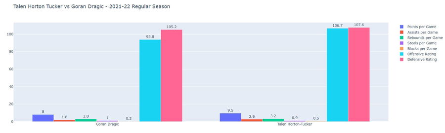Talen Horton-Tucker vs Goran Dragic 2021-22 Regular Season (Stats valid as of 10th Feb 2022)