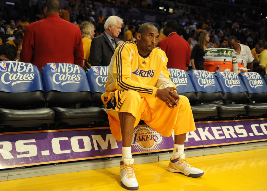 Los Angeles Lakers guard Kobe Bryant #24 before taking the court for the third quarter of play in the Lakers 1105-103 win over the Denver Nuggets in Game 1 of the Western Conference Finals best of seven series Tuesday May, 19, 2009 at the Staples Center. Tim Rasmussen, The Denver Post (Photo By Tim Rasmussen/The Denver Post via Getty Images)