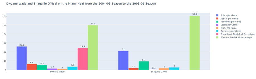 Dwyane Wade and Shaquille O’Neal on the Miami Heat from the 2004-05 Season to the 2005-06 Season (Stats Include Regular Seasons and Playoffs)