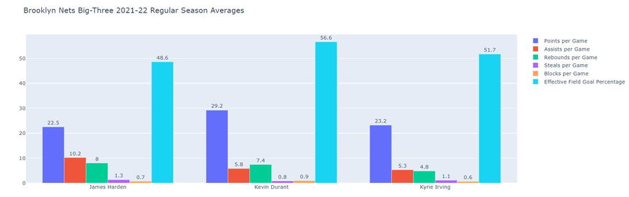 Brooklyn Nets Big-Three 2021-22 Regular Season Averages (Stats valid as of 7th Feb 2022)
