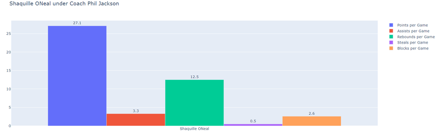Shaquille O’Neal’s stats for the LA Lakers while playing for coach Phil Jackson
