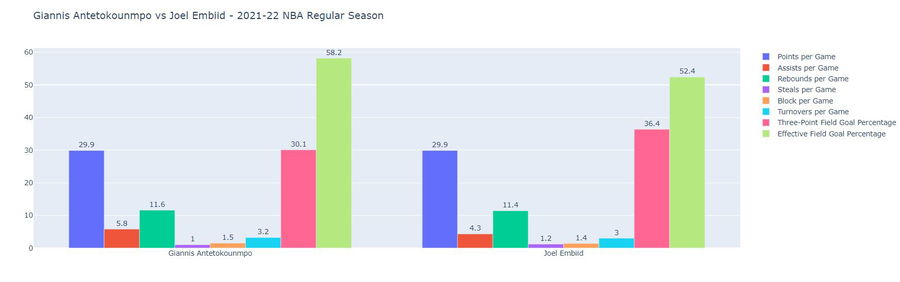 Giannis Antetokounmpo vs Joel Embiid – 2021-22 NBA Regular Season (Stats Valid as of 30th March 2022)