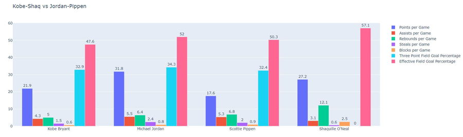 Kobe-Shaq vs Jordan-Pippen (Stats include Regular Season and Playoffs)