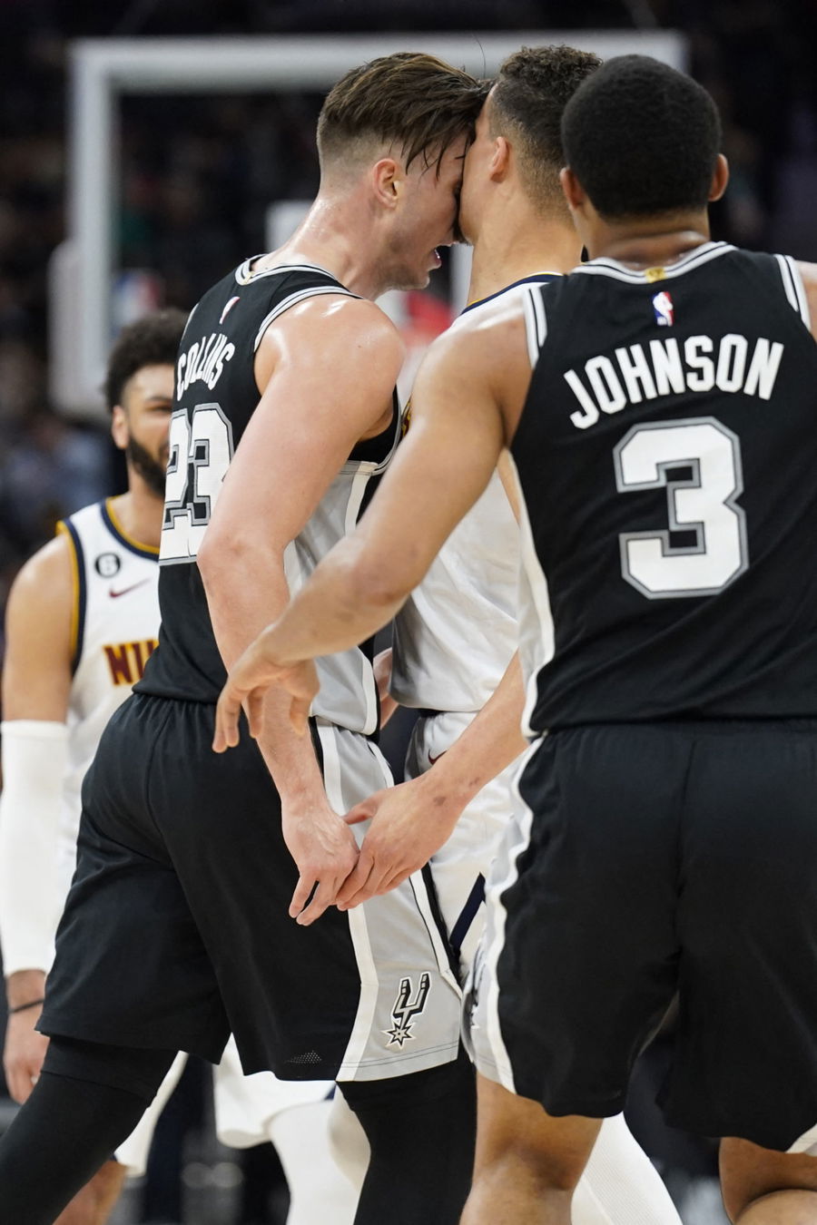 Zach Collins took offense to whatever was said to him as he ran up to Porter Jr. to confront him. As Collins was bumping heads with Porter Jr., the Nuggets forward shoved him away after grabbing Collins’ neck.