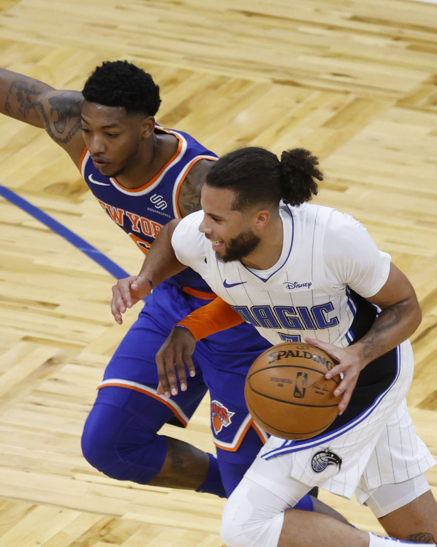 Magic guard Michael Carter-Williams against Knicks’ Elfrid Payton at Amway Center. Mandatory Credit: Kim Klement-USA TODAY Sports