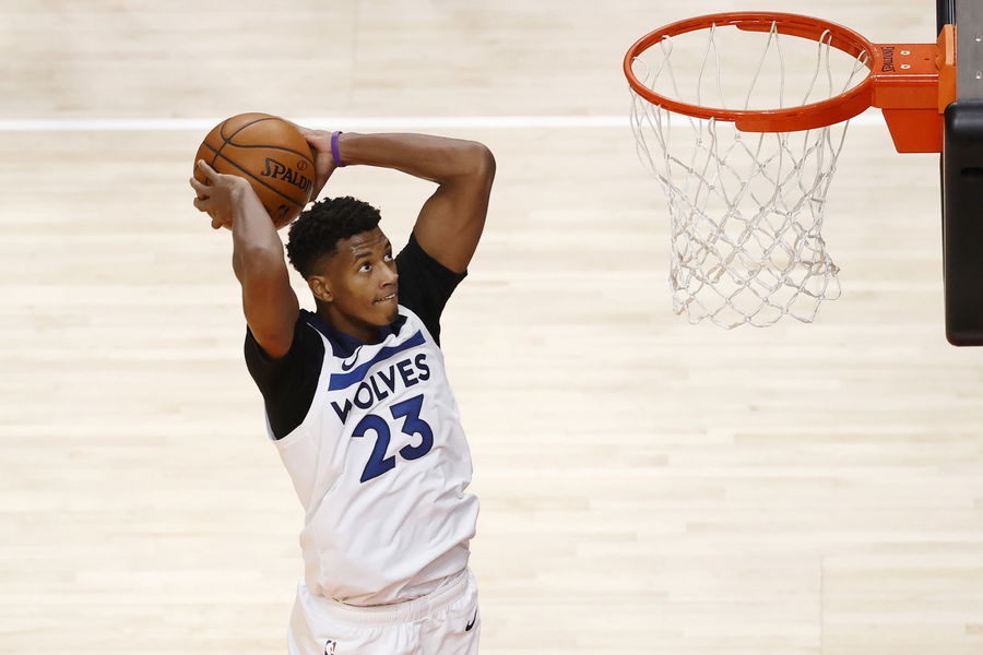 Dec 26, 2020; Salt Lake City, Utah, USA; Minnesota Timberwolves guard Jarrett Culver (23) dunks the ball on a breakaway in the second quarter against the Utah Jazz at Vivint Smart Home Arena. Mandatory Credit: Jeffrey Swinger-USA TODAY Sports