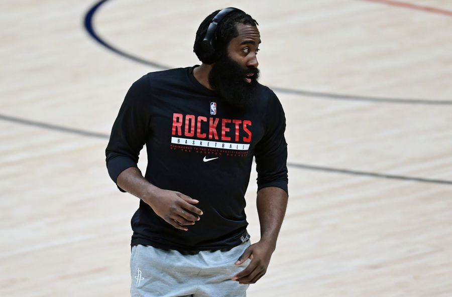 Dec 28, 2020; Denver, Colorado, USA; Houston Rockets guard James Harden (13) before the game against the Denver Nuggets at Ball Arena. Mandatory Credit: Ron Chenoy-USA TODAY Sports