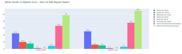 James Harden vs Stephen Curry – 2021-22 NBA Regular Season (Stats Valid as of 27th March 2022)
