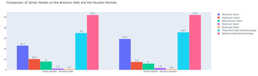 Comparison of James Harden on the Brooklyn Nets and Houston Rockets (Stats valid as of 15th Feb 2022)