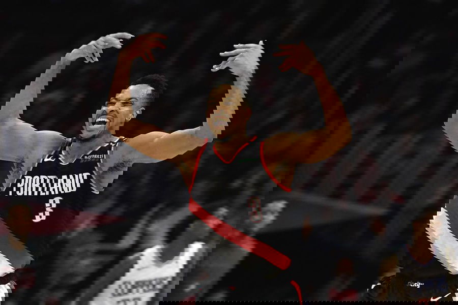 PORTLAND, OR – MAY 9: CJ McCollum (3) of the Portland Trail Blazers licks his chops during the second quarter against the Denver Nuggets on Thursday, May 9, 2019. The Denver Nuggets versus the Portland Trail Blazers in game six of the teams’ second round NBA playoff series at the Moda Center in Portland. (Photo by AAron Ontiveroz/MediaNews Group/The Denver Post via Getty Images)