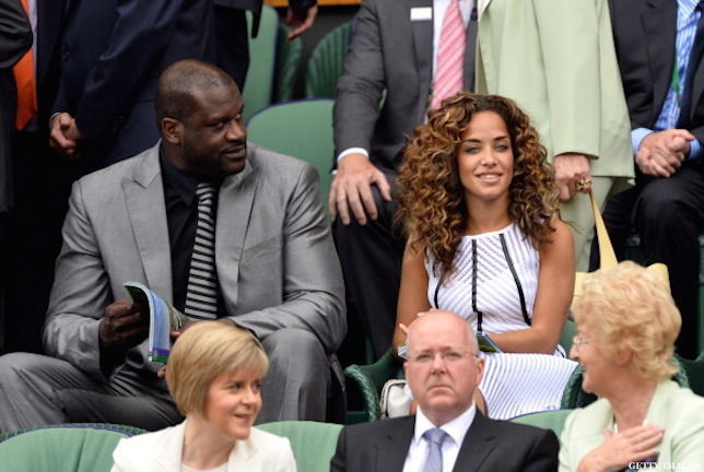 LONDON, ENGLAND – JUNE 23: Shaquille O’Neal and Laticia Rolle attend the Andy Murray v David Goffin match on centre court during day one of the Wimbledon Championships at Wimbledon on June 23, 2014 in London, England. (Photo by Karwai Tang/WireImage)