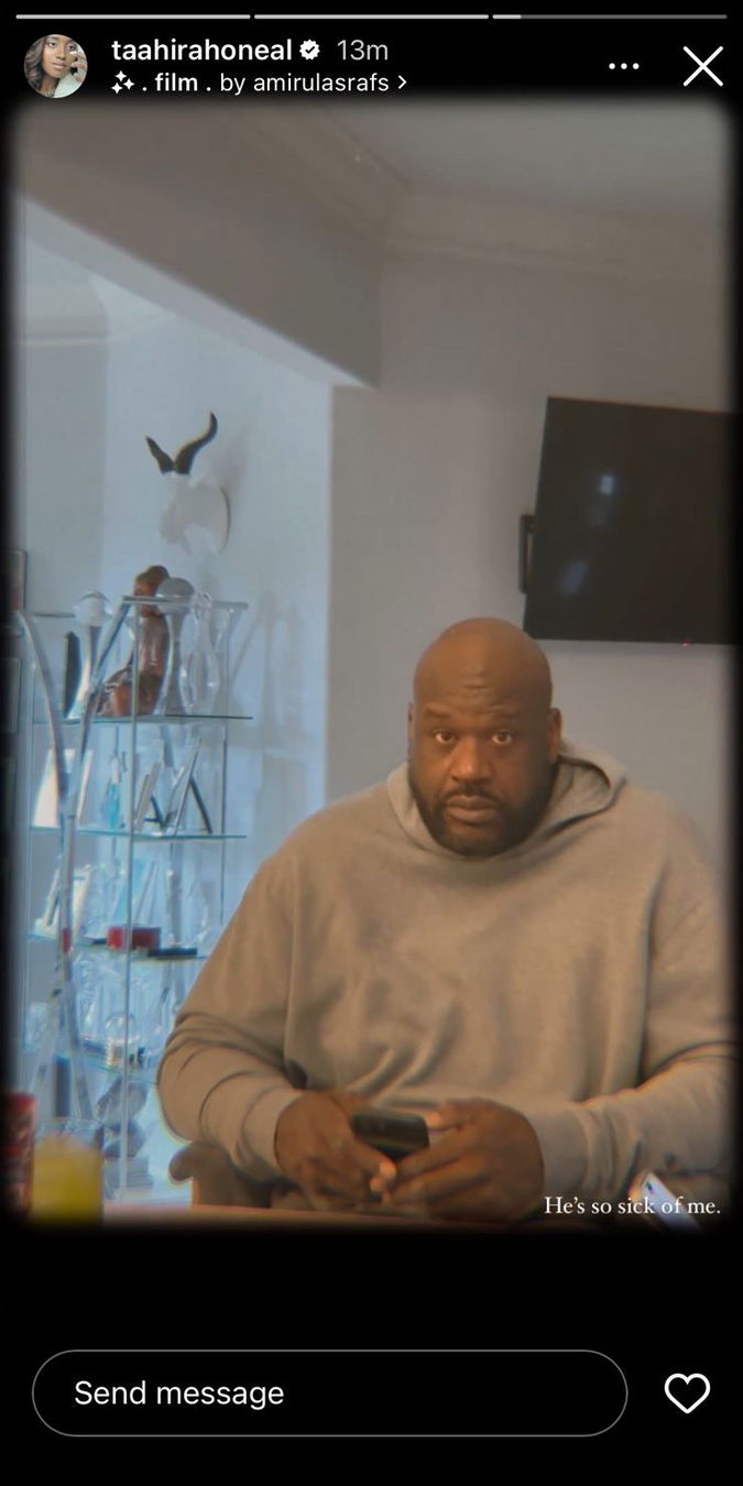 Recently, in an Instagram story, Taahirah shared a video of her father sitting in front of her. She was filming him and laughingly said “Can you smile”. The caption read: “He is so sick of me”, though Shaq does not respond or react over this. You can have a look at the story she posted, here: