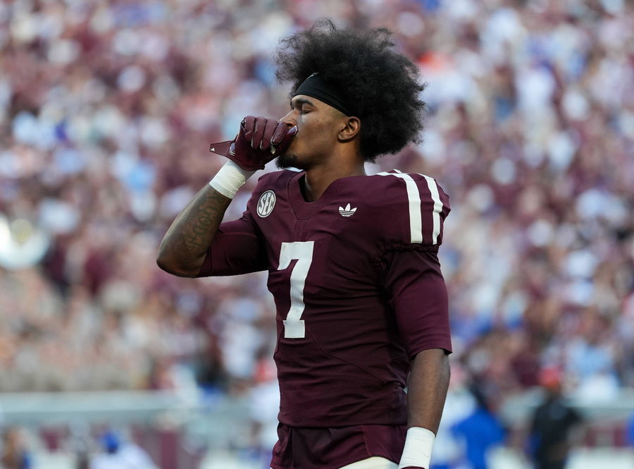 October 11, 2025, College Station, Texas, USA: Texas A&M wide receiver KC Concepcion 7 before the start of the college football game between Texas A&M and Florida on October 11, 2025 in College Station, Texas. Texas A&M won, 34-17. College Station USA – ZUMAc201 20251011_zap_c201_049 Copyright: xScottxColemanx
