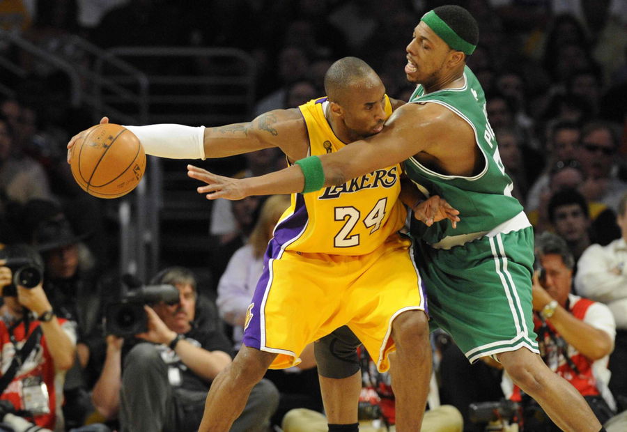 Image number 03740170 date 12 06 2008 Copyright imago Xinhua Kobe Bryant Los Angeles Lakers left against Paul Pierce Boston Celtics PUBLICATIONxNOTxINxCHN Vdig horizontal Duel NBA Finals 2007 2008 Playoffs Playoff Play Offs Off Los Angeles Lakers Boston Celtics Los Angeles La l A Dynamics Fight Basketball men Team USA Group photo Action shot Human Beings